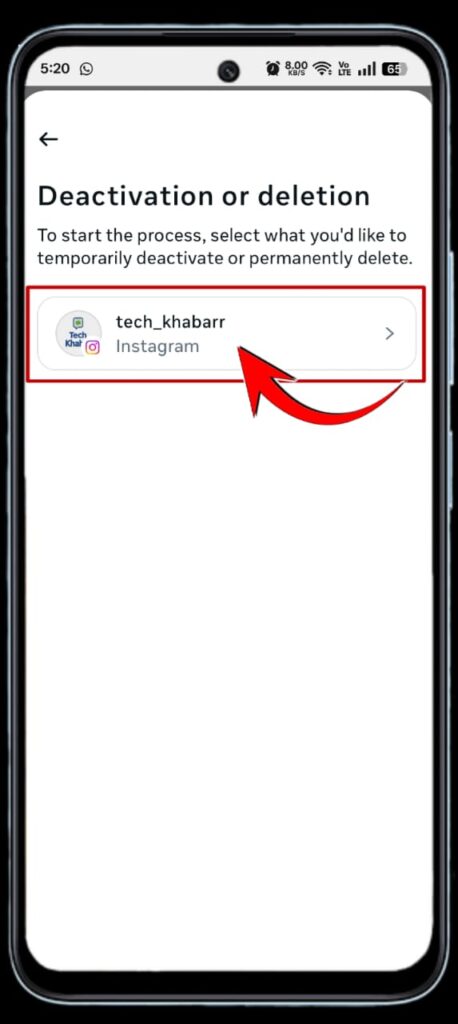 अब यहां पर अपने Instagram Account पर क्लिक करें।