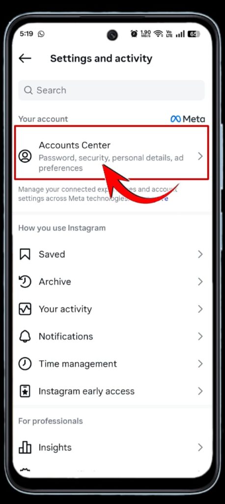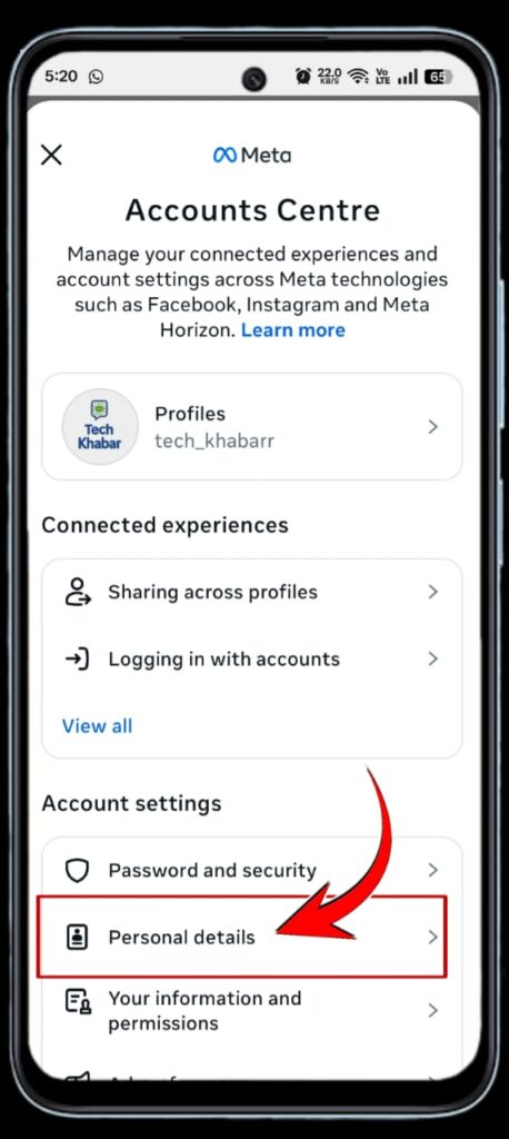इसके बाद आप सभी Account Centre के ऑप्शन पर क्लिक करें।