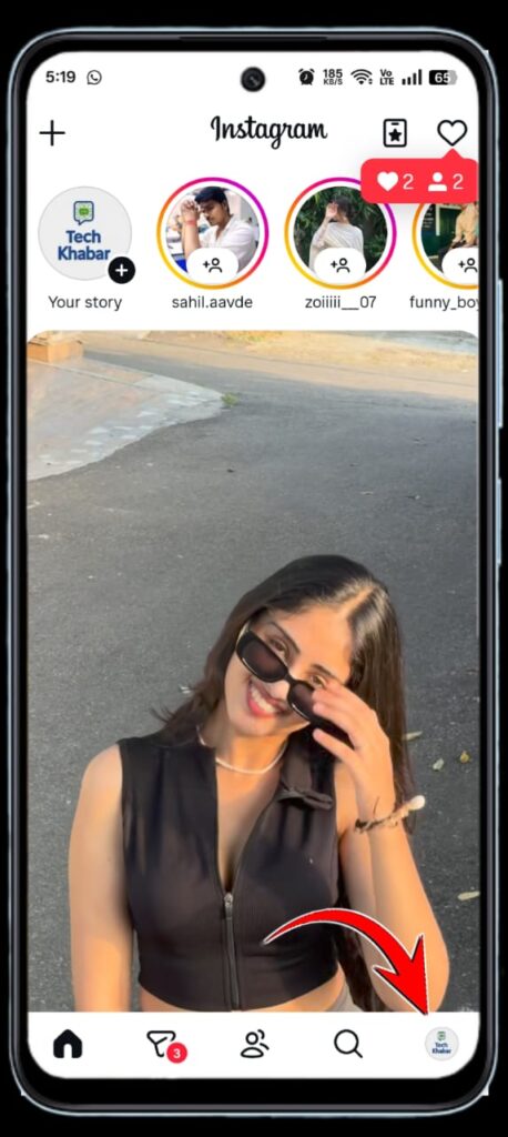 सबसे पहले Instagram App को अपने मोबाइल फोन के अंदर ओपन करें।