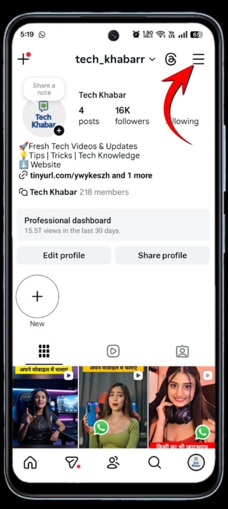 अब ऊपर की तरफ दिए गए 3 लाइन यानी की 3 डॉट पर क्लिक करें।